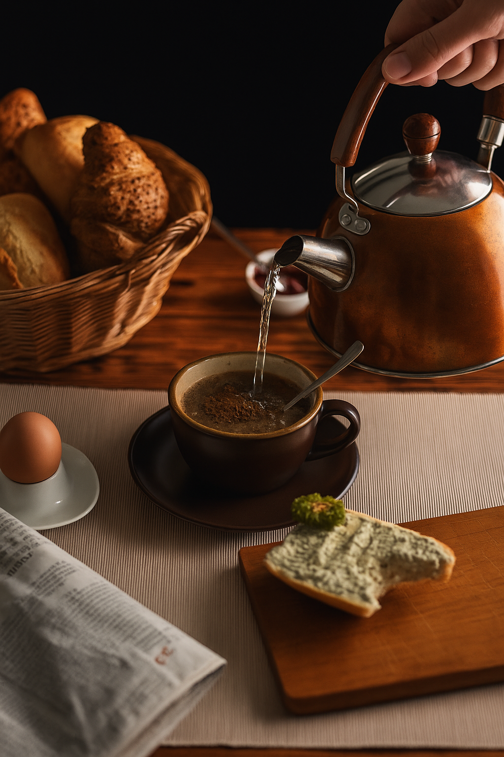 Earthy, rich, and lightly spiced — think dark chocolate meets chai. It’s smooth, warming, and deeply satisfying, with subtle sweetness from cacao and balance from ginger, cinnamon, and turmeric.