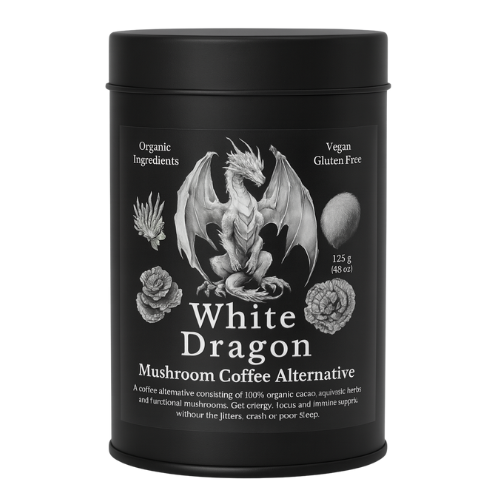White Dragon is a caffeine-free, sugar-free wellness elixir made from 100% organic dual-extracted medicinal mushrooms and healing Ayurvedic spices. It’s designed to support immunity, focus, energy, digestion, and emotional balance — without the jitters or crash of coffee.